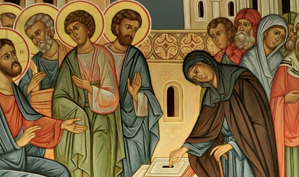 Il brano di questa domenica rappresenta l’ultima parte narrativa del Vangelo di Marco, prima dei grandi discorsi sulle cose ultime e la narrazione degli eventi pasquali. Attraverso questa Parola Gesù vuole farci riflettere sulla verità e coerenza della nostra testimonianza cristiana, mettendo a nudo le disposizioni più intime del nostro cuore. Nel tempio, vale a dire nel luogo della presenza di Dio, convivono il grano e la zizzania, i cuori limpidi e i cuori ipocriti. Noi, come discepoli destinatari di tale insegnamento, in quale categoria ci collochiamo? Per aiutarci a trovare una risposta dentro noi stessi, Gesù ci presenta due esempi. Il primo è dato dagli scribi, conoscitori della Parola, studiosi della stessa e maestri in Israele. Nonostante queste alte qualificazioni curriculari, essi sono schiavi dell’apparenza, del desiderio di essere osannati ed elogiati, come anche di ricevere attenzioni e privilegi umani. In altre parole sono schiavi della loro vana gloria. Accanto a questa diagnosi, Gesù dice che spesso sono voraci, affamati di beni materiali e mostrano persino una pietà affettata, praticata per essere notati dagli altri. Possiamo dire di essere noi stessi immuni da questi atteggiamenti? Per tutti noi sono forti tentazioni: molto sottili, non sempre facilmente percepibili, ma non per questo meno dannose. Sono modi più o meno accentuati di sostituire Dio con il nostro io! Gesù è schietto: chi cade in questi atteggiamenti, riceverà una condanna più severa degli altri! Certamente chi ha responsabilità di guida verso i fratelli, sia nella Chiesa, sia nella società, dovrebbe prendere molto sul serio queste parole di Gesù. A questa fortissima rampogna del Maestro, fa seguito l’altro esempio, quello di una povera vedova, emblema dell’insignificanza e dell’emarginazione nella società del tempo di Gesù. Eppure, proprio da una debolezza così accentuata, emerge la verità della coerenza evangelica. Di fronte al tintinnio delle monete superflue che venivano gettate dai ricchi nel tesoro del tempio, questa povera donna nascosta e discreta vi getta soltanto due spiccioli. Per avere un’idea del valore degli stessi in quel tempo, gli studiosi dicono che poteva essere l’equivalente di un ottavo di quanto si dava ai poveri di Roma al tempo di Gesù. Una quantità di denaro veramente irrisoria. Eppure davanti a Dio, quel gesto così insignificante, vale più di tutto il rumore dei ricchi, perché ella, confidando totalmente in Dio e nella sua Provvidenza, non teme di offrire a Dio il tutto che possiede. Il testo originale dice ella “gettó tutta la sua vita” (olon ton bion autes). La vedova, con il suo coraggio umile e totalizzante, viene elevata da Gesù ad esempio di vera maestra per tutti noi. E noi, cosa siamo disposti a donare a Dio? Troppo spesso la prudenza umana ci frena nel coraggio della carità e nella forza del dono, finendo per farci chiudere nella paura di perdere troppo di noi stessi. Una fede vera nella Provvidenza del Padre ci invita a donarci senza riserve. La liturgia ambrosiana ha una stupenda preghiera che don Luigi Giussani amava ripetere e che ben compendia l’atteggiamento di questa vedova: “Domine Deus, in simplicitate cordis mei laetus obtuli universa” (Signore Dio, nella semplicità del mio cuore, lietamente ti ho dato tutto) (Orazione d’Offertorio della antica liturgia della festa del SS. Cuore di Gesù, in Messale Ambrosiano. Dalla Pasqua all’Avvento, Milano 1942, p. 225).