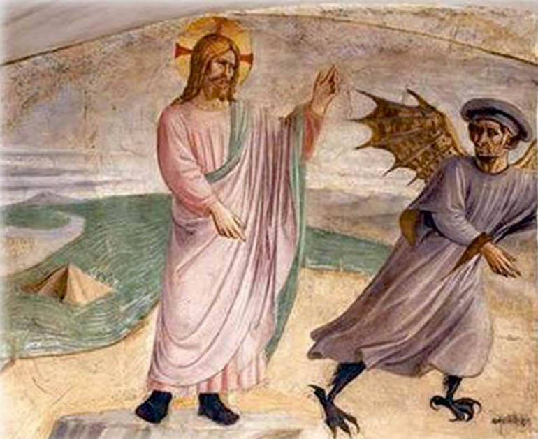 Il ciclo delle domeniche di quaresima dell’anno liturgico A è caratterizzato da una particolare sottolineatura dei temi battesimali, che ci accompagneranno in tutto il percorso fino al Triduo pasquale, quando nella notte di Pasqua saremo chiamati a rinnovare le nostre promesse battesimali con un cuore nuovo. In questa domenica, attraverso l’episodio delle tentazioni di Gesù, siamo invitati a riflettere sulla sua identità di Figlio di Dio e sulla dignità di ciascuno di noi come cristiano. In un famoso discorso, san Leone Magno, così ci esorta: “Riconosci, cristiano, la tua dignità e, reso partecipe della natura divina, non voler tornare all’abiezione di un tempo con una condotta indegna”. La tentazione, prima di essere l’invito a compiere qualcosa di sbagliato, è un errore circa la verità di Dio e la verità di noi stessi. Le tentazioni che Gesù visse nel deserto, luogo della solitudine e della prova, con evidente richiamo all’esperienza quarantennale di Israele in uscita dall’Egitto, sono profondamente legate alla sua umanità: sono segni concreti che la sua incarnazione è un fatto reale, non apparente o ideale. L’opera del maligno consiste nel voler travisare il piano del Padre per Gesù, creando delle “scorciatoie”, che bypassino la sua umanità. L’uomo ha fame, ha dei bisogni materiali, tuttavia essi non sono assoluti. Anche Gesù ce li ha, ha fame, ma la sua identità è quella del Messia Salvatore, il suo cibo è fare la volontà del Padre. Porre i bisogni terreni come priorità assoluta snatura il volto di Dio e trasforma dei mezzi in fini. L’arma della Scrittura, con cui Gesù risponde alla tentazione diabolica, ci fa ben comprendere questo suo approccio. Ciò che conta veramente per l’uomo è rimanere nella Parola, cercare la volontà di Dio e usare dei beni materiali sempre come strumenti, mai come fini. Dopo l’insuccesso della prima tentazione, il maligno torna alla carica con qualcosa di più sottile. Non è riuscito con l’assolutizzazione di ciò che è materiale, prova con la spettacolarizzazione. Da un’opera salvifica fatta di nascondimento, umiltà, offerta e dono, secondo il disegno del Padre, satana vorrebbe indurre Gesù ad un messianismo magico, rumoroso, spettacolare e da prima pagina. Questa tentazione può essere impattante anche nella nostra vita, quando cerchiamo segni, prodigi, miracoli, che ci confermino nelle nostre idee, piuttosto che ricercare nel silenzio e nella fatica della fede vissuta nel quotidiano il volto del Padre, che preferisce il sussurro del vento leggero della Parola, piuttosto che la dirompenza del vento, la violenza del terremoto o il calore del fuoco (cfr. 1Re 19,11-12). Infine, la più sottile di tutte le tentazioni, quella del potere: cambiare il progetto di amore e donazione, per uno di oppressione e dominio. Questo atteggiamento richiede di eliminare Dio e porre l’idolo di se stessi, del potere e del male al di sopra di Lui. L’arma vincente è quella di riconoscere che solo Dio, è il Signore, fonte di ogni potere e benedizione, mentre l’uomo è chiamato ad obbedirgli e rimanere in quella totale e salutare dipendenza da Lui. Muovendo i primi passi di questo cammino quaresimale, dunque, siamo invitati come Gesù ad essere guidati dallo Spirito, attraverso l’esperienza della prova, confidando nella forza della fede e nella potenza dalla sua Parola, che è sempre l’arma vincente contro gli assalti del male, che è comunque destinato a perire. Rimanendo saldi in questo cammino, quando nella notte di pasqua ci sarà chiesto: “Rinunci a satana?”, potremo rispondere con convinzione: “Rinuncio!”. Il no al male, tuttavia, non basta: abbiamo bisogno di dire anche con convinzione: “Credo che Dio c’è ed è mio Padre, che mi ama in Cristo e vuole salvarmi, rendendomi figlio in suo Figlio!”. Buon cammino a tutti!