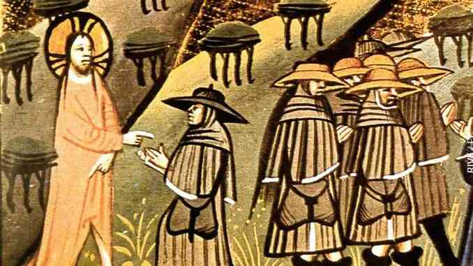 Lungo il cammino verso Gerusalemme, Gesù attraversava la Samarìa e la Galilea. Entrando in un villaggio, gli vennero incontro dieci lebbrosi, che si fermarono a distanza e dissero ad alta voce: «Gesù, maestro, abbi pietà di noi!». Appena li vide, Gesù disse loro: «Andate a presentarvi ai sacerdoti». E mentre essi andavano, furono purificati. Uno di loro, vedendosi guarito, tornò indietro lodando Dio a gran voce, e si prostrò davanti a Gesù, ai suoi piedi, per ringraziarlo. Era un Samaritano. Ma Gesù osservò: «Non ne sono stati purificati dieci? E gli altri nove dove sono? Non si è trovato nessuno che tornasse indietro a rendere gloria a Dio, all’infuori di questo straniero?». E gli disse: «Àlzati e va’; la tua fede ti ha salvato!».